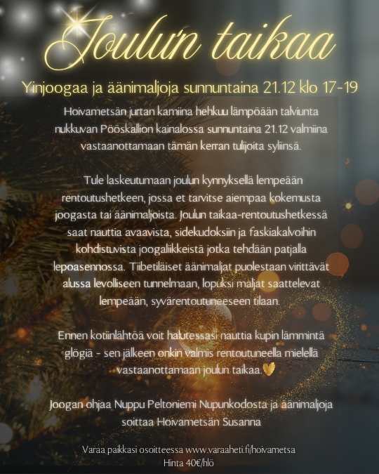 Huom! Jos haluat päästä vaikuttamaan, milloin seuraavia äänimatkoja ja rentoutushetkiä pidetään, laita WA-viestiä o5o3082723 ja pyydä päästä liittyä Hoivametsän WA-ryhmään jossa sovitaan yhdessä tulevia ajankohtia 💚